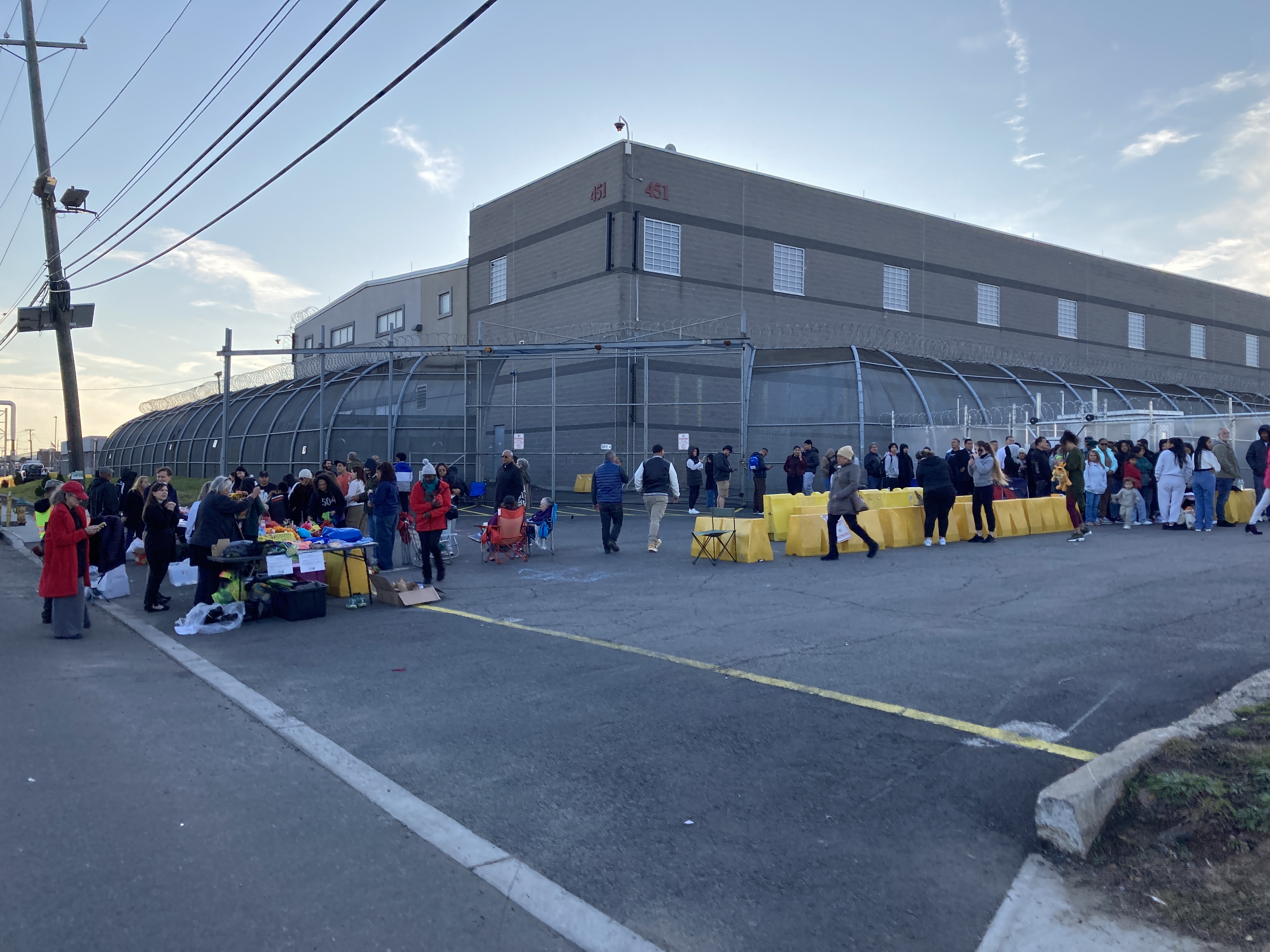 there are 4 cars that have no plates and men with bullet proof vests and masks gearing up in the new york hall of science parking lot in corona, queens