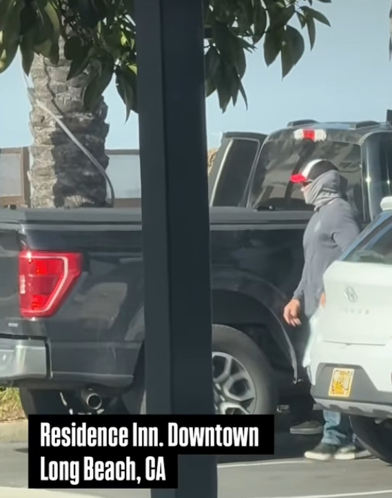 masked kidnappers in the parking lot of residence inn hotel in long beach, spotted returning after terrorizing the commu ..