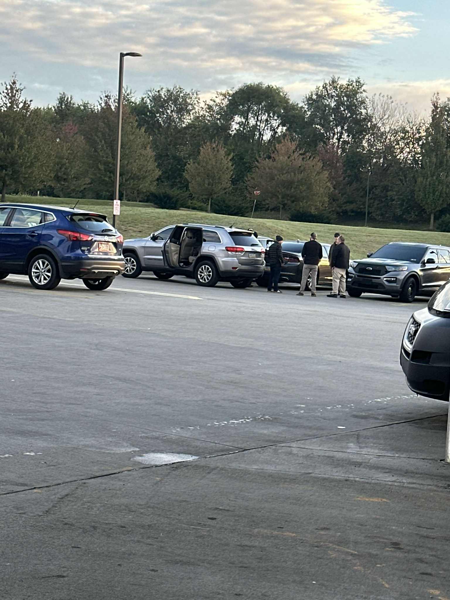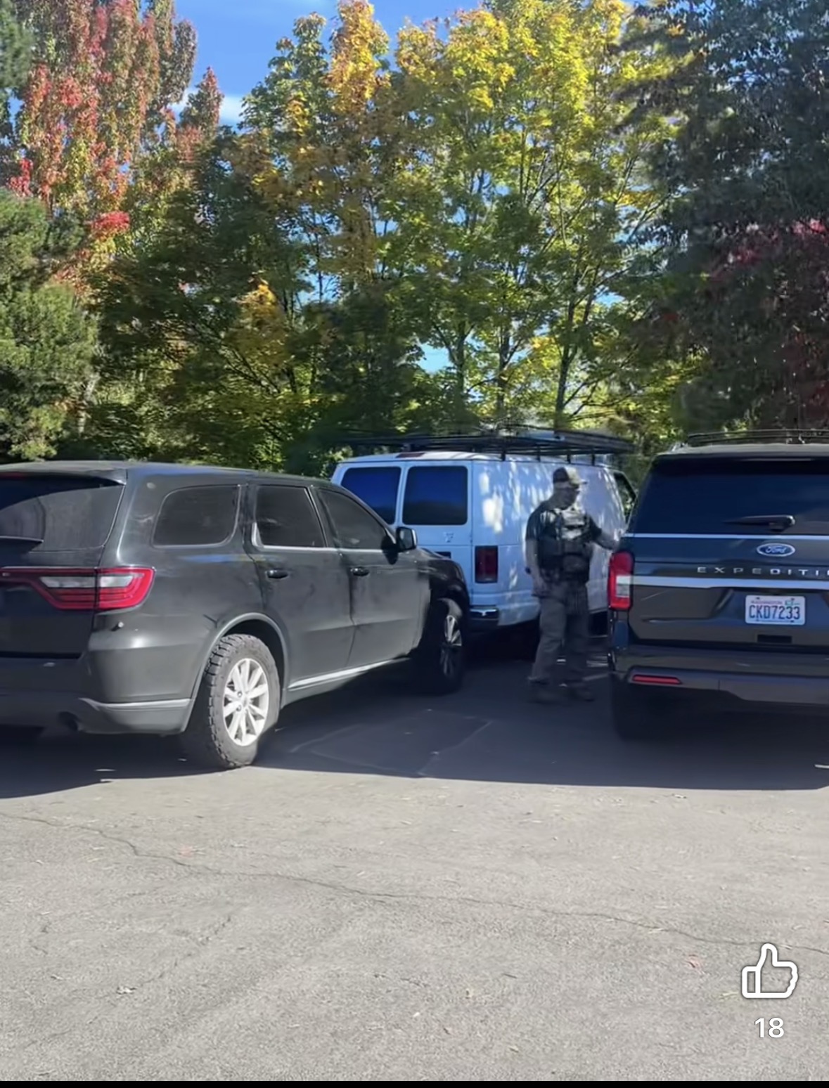 ice spotted on walnut street, two black ford f-350 trucks, unmarked, parked in the parking lot behind cafe moulin, both ..