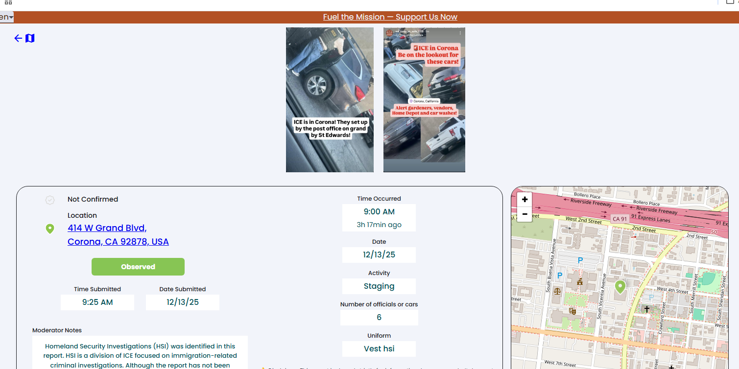 URGENT Confirmed ICE report