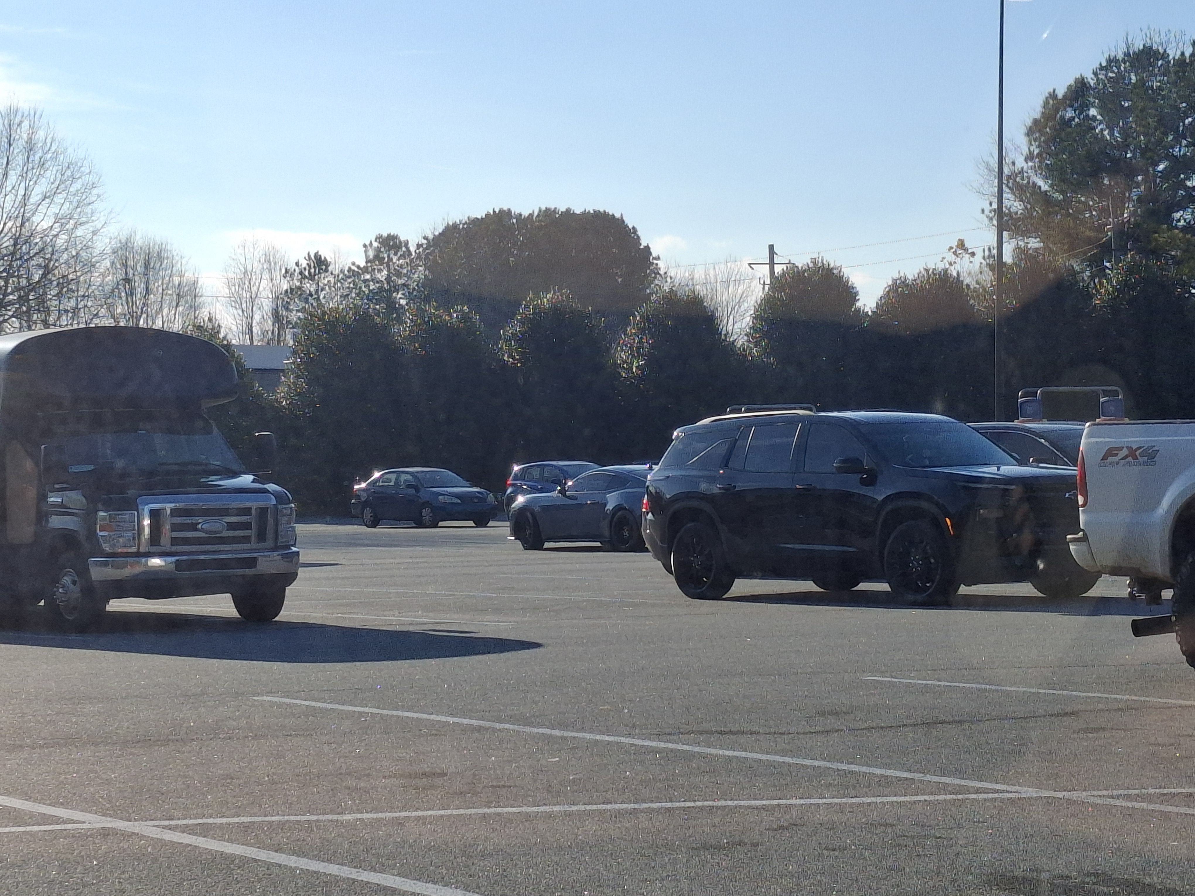 there is an all blacked out ford explorer with a federal government plate, and a black grand wagoneer, at the jiffy lube ..
