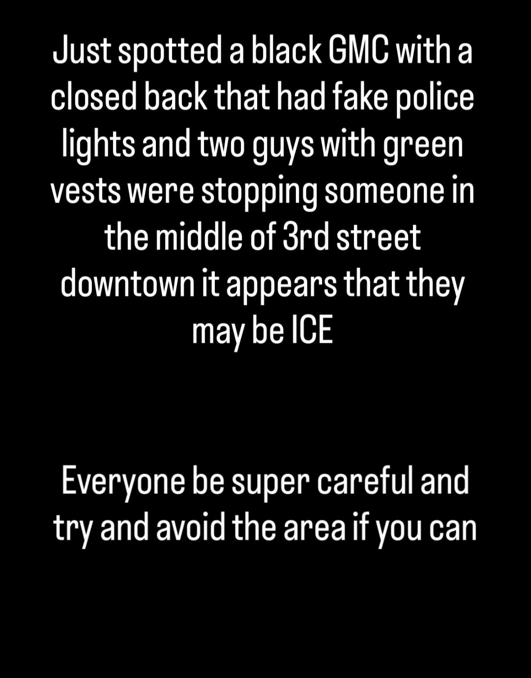 unmarked black ice suv with multiple agents seen when driving by. ..