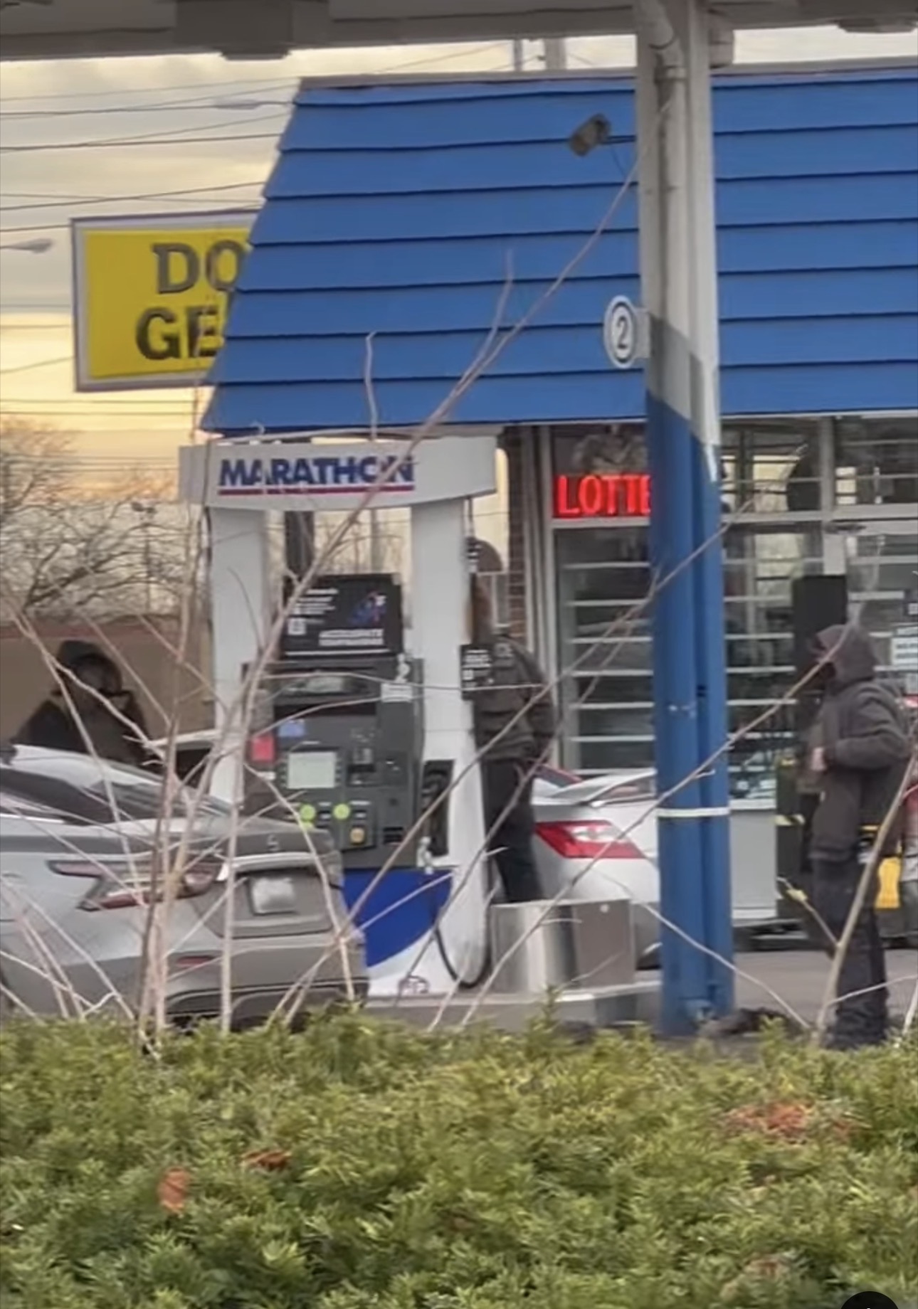 a worker at first stop liquor on lincoln and illinois got taken today. he was pressure washing the parking lot and ice j ..