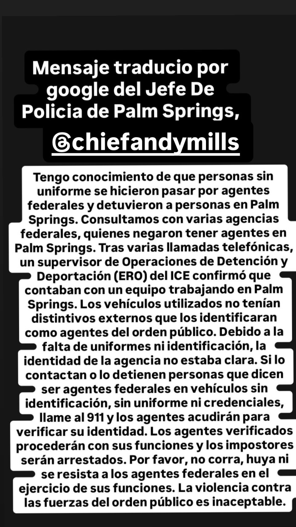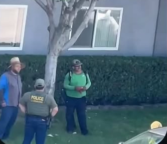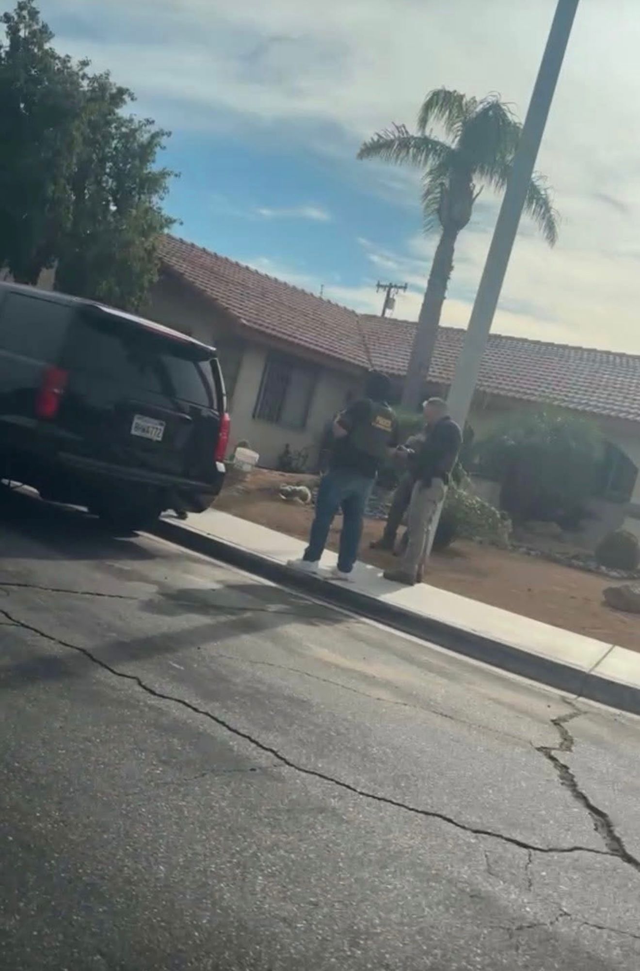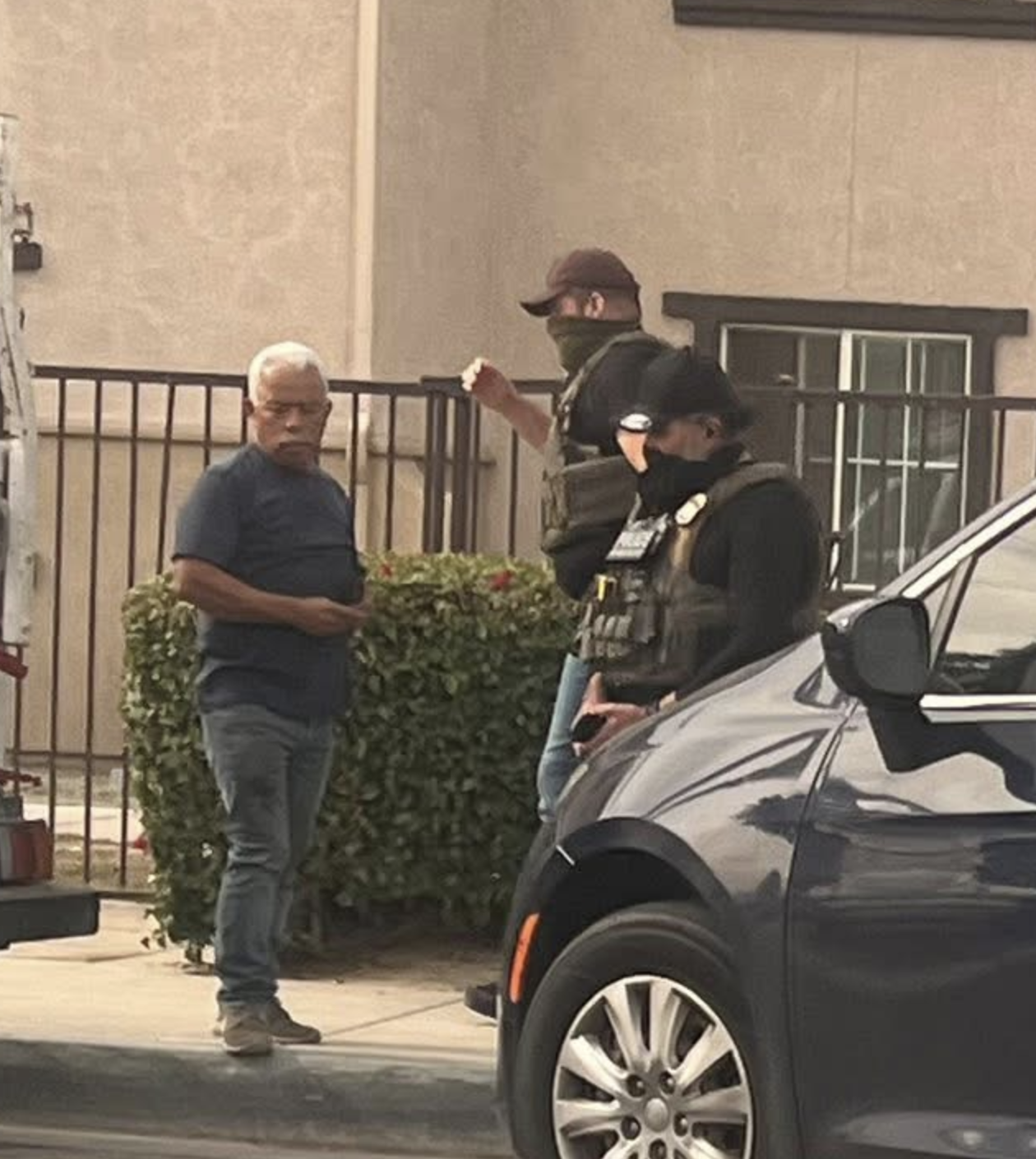 ice interrogando a un hombre cerca de los apartamentos casa grande y del parque bagdouma en coachella. no se proporcionà ..