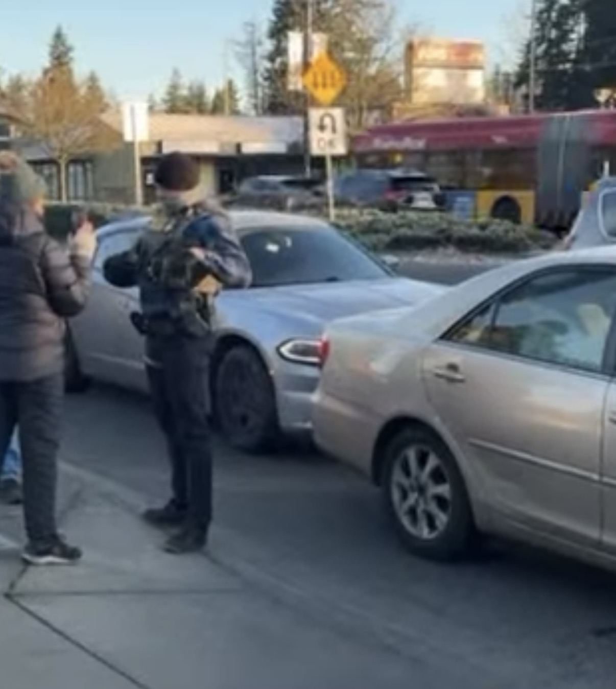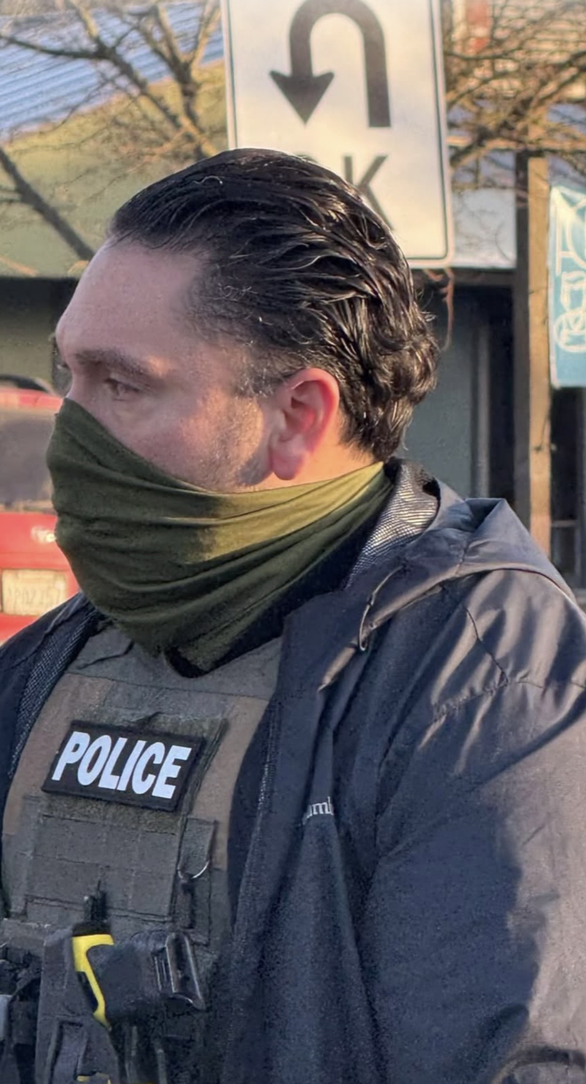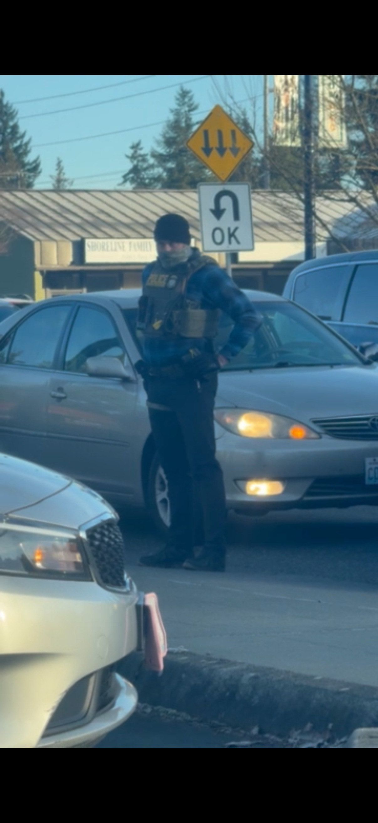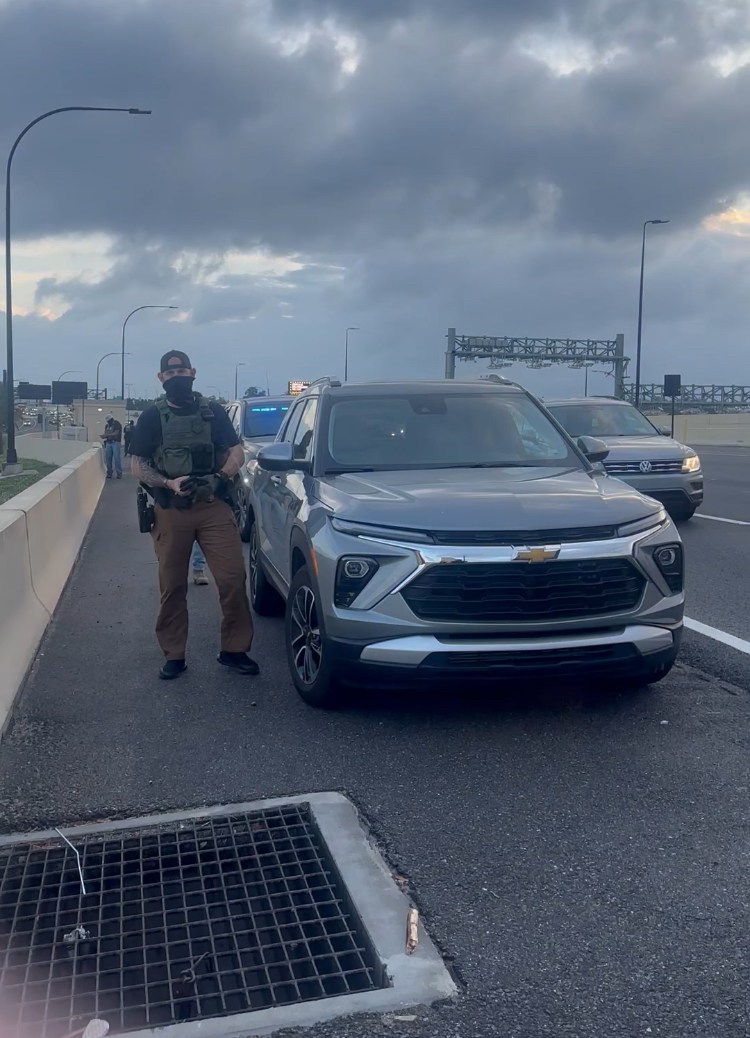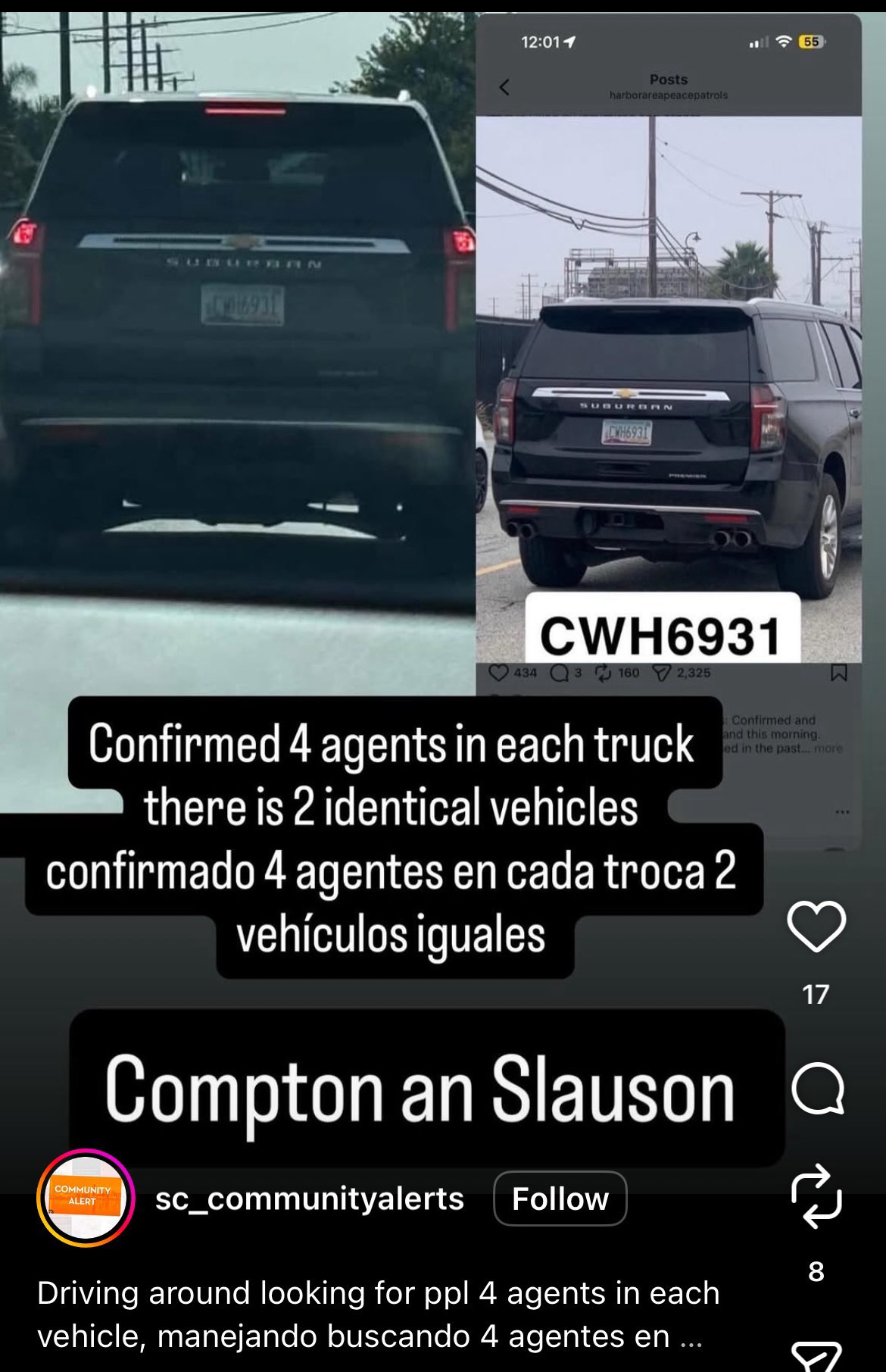 As soon as I notice these individuals they had bulletproof vests on walkie talkies. They were a pair one of their driver seat, one in the passenger seat and as soon as they realized that I was taking a picture of their license plate they started driving off. I then followed them go up and down a few streets in my neighborhood before they eventually left going towards downtown on Olympic