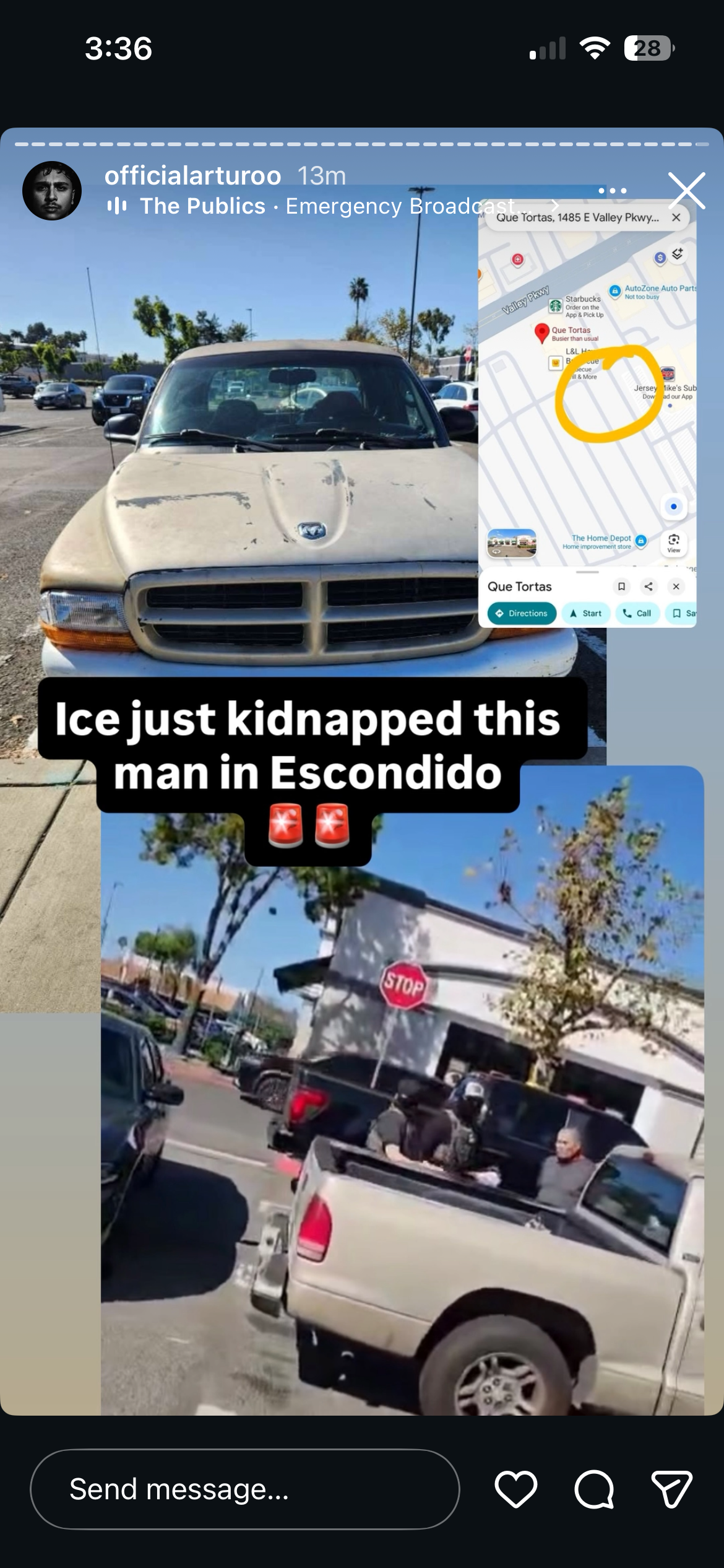 confirmed kidnapper vehicle from terminal island spotted at the panorama city home depot. they are staging at a nearby f ..