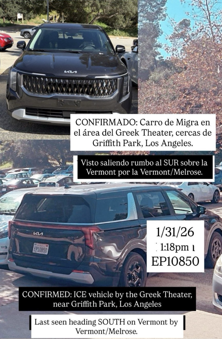 confirmed ice vehicle with plate ep10850 spotted by the greek theater near griffith park. last seen heading south on ver ..