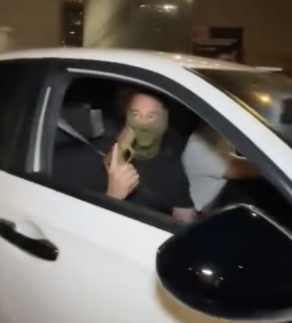 ice agent pulled his gun out on unarmed protestors when leaving the downtown la detention center. 10pm. vehicle is a whi ..