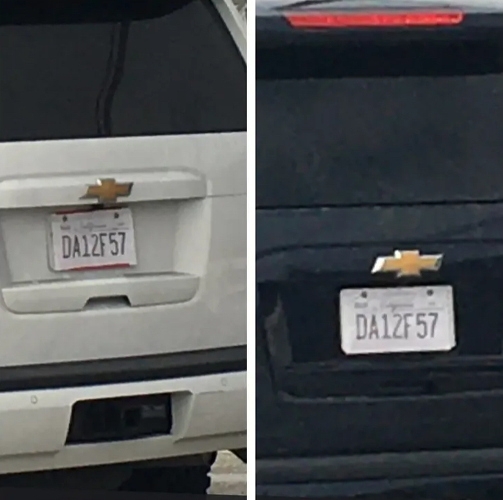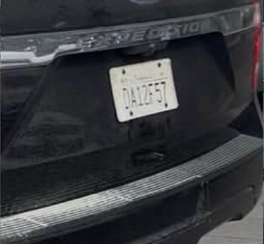 Ford Expedition used by ICE agents has swapped plates with this plate number. This is a fake paper plate printed with the same number as the two Chevy Tahoe’s exiting Terminal Island with masked agents.