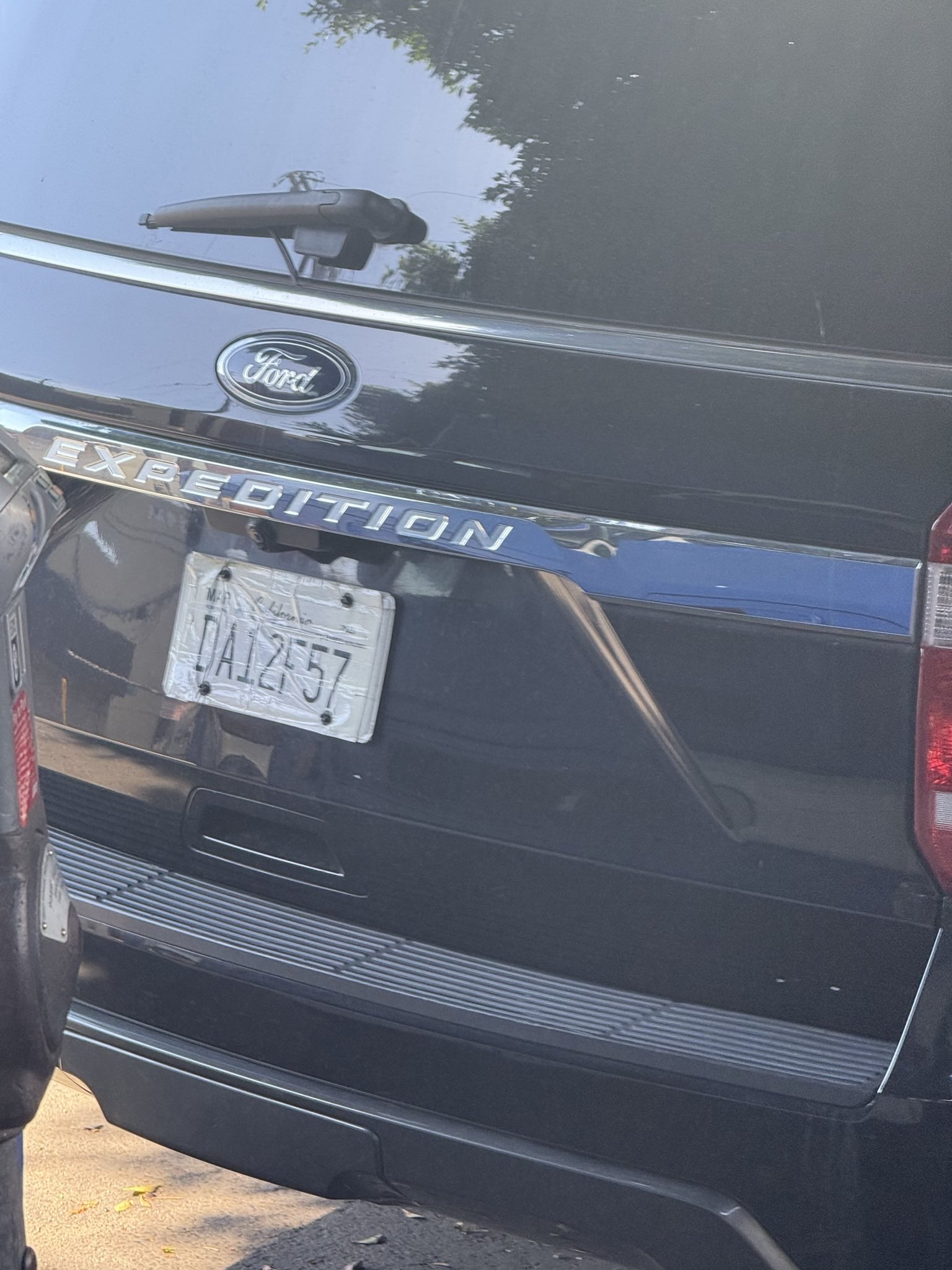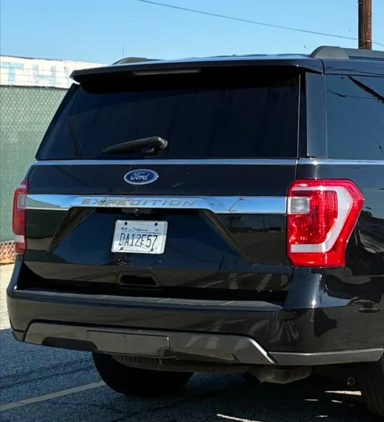 Masked agents leaving terminal island in black Ford Expedition with fake plates 9am 8/30/25