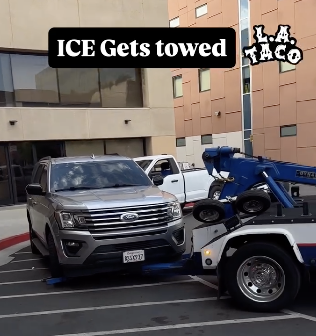 Kidnapper vehicle gets towed from Hospital after they called to have it removed. This is where TikToker Richard L.A. is being held/treated after being shot by U.S. Marshal while being targeted during an immigration arrest. This is the second ICE vehicle towed from the hospital.