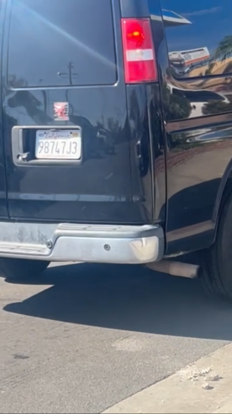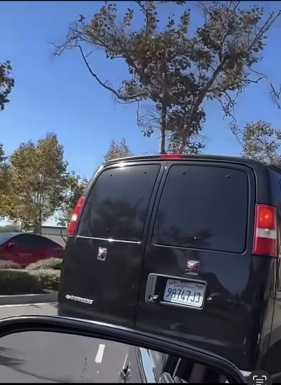 Van used by SRT kidnapper unit is using black marker to alter license plate number from 98747J3 to 98747U8. Morning of 11/4/2025