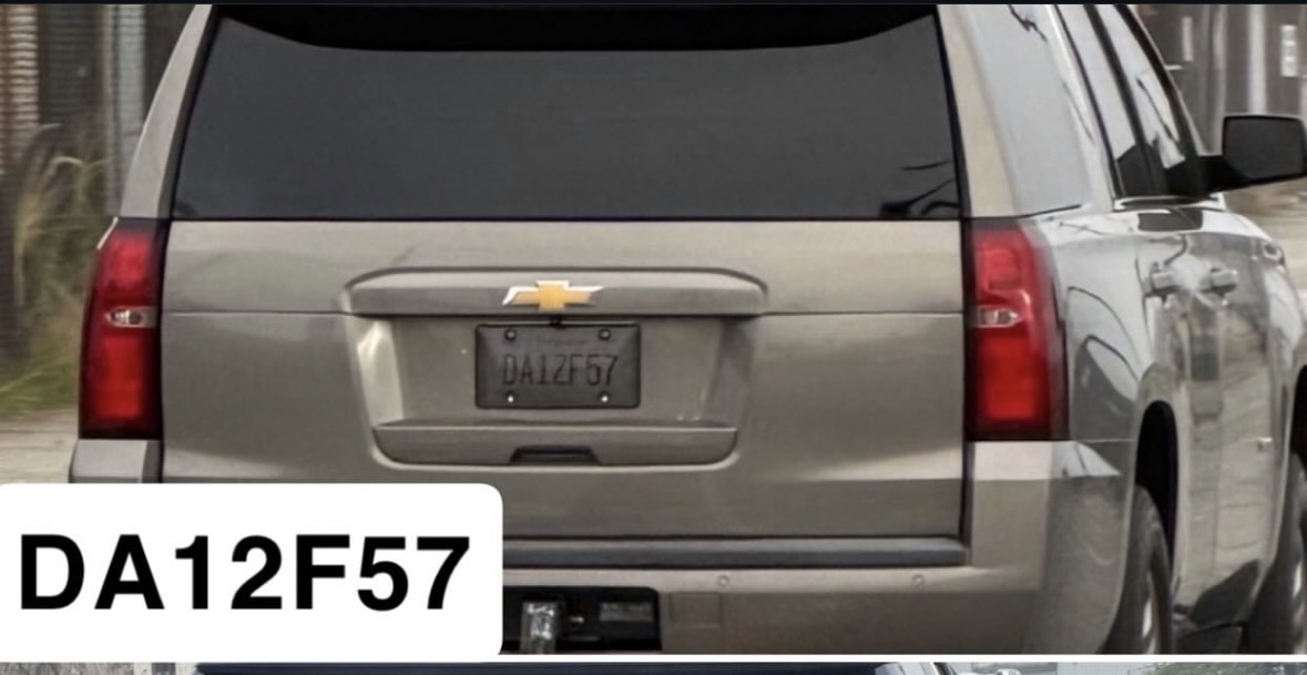 Ford Expedition used by ICE agents has swapped plates with this plate number. This is a fake paper plate printed with the same number as the two Chevy Tahoe’s exiting Terminal Island with masked agents.