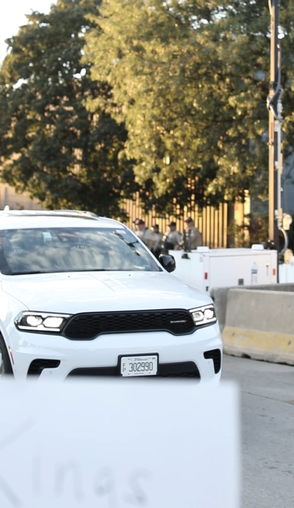 White, seen leaving ICE facility with several other cars. Driver and one passenger with facial covering.