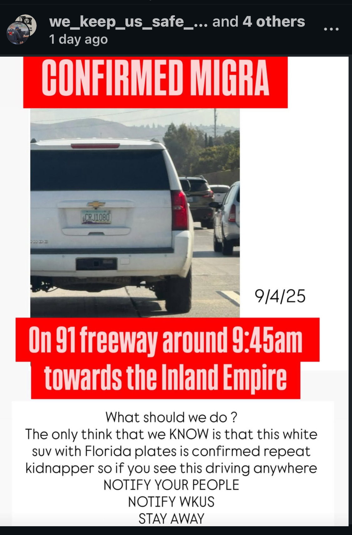 Observed staging and hiding from community members on perimeter of Signal Hill Home Depot in Long Beach , 9/1/2025 7:30am. This white Tahoe then drove behind Home Depot and met with another truck as both joined the more vehicles entering the Home Depot parking lot with more masked agents attempting to take workers.